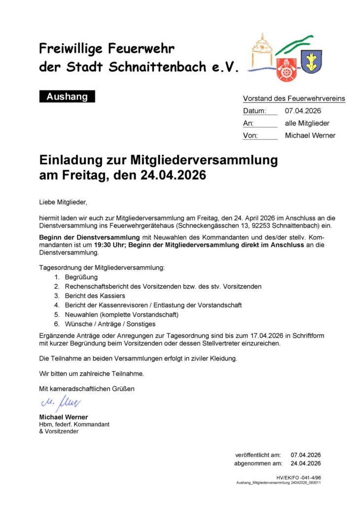 Liebe Feuerwehrkameradinnen und -kameraden, auch wenn der Frühling derzeit eine kleine Pause einlegt und der…